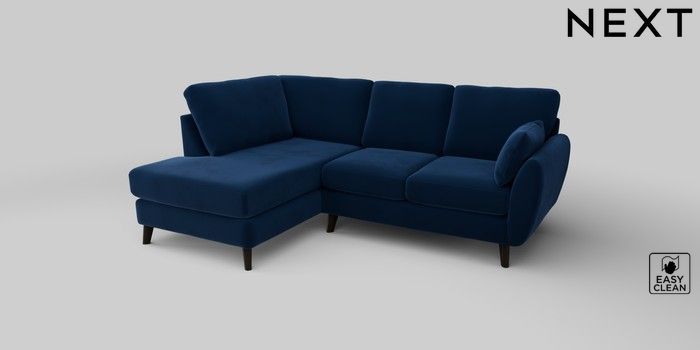 6.12.1 Buy Wilson Medium Corner Chaise - Left Hand Plush Velvet Easy Clean Navy Blue Retro Tapered - Dark from the Laura Ashley online shop Click here to use our website with more accessibility support, for example screen readers
