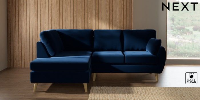 7.3.1 Buy Wilson Medium Corner Chaise - Left Hand Plush Velvet Easy Clean Navy Blue Retro Tapered - Light from the Laura Ashley online shop