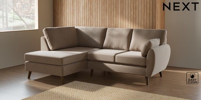 7.3.1 Buy Wilson Medium Corner Chaise - Left Hand Tweedy Blend Easy Clean Light Dove Natural Retro Tapered - Mid from the Laura Ashley online shop