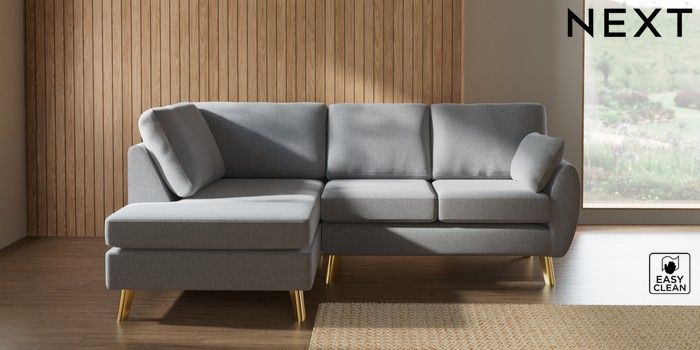 7.3.1 Buy Wilson Medium Corner Chaise - Left Hand Tweedy Blend Easy Clean Light Silver Grey Metal Tapered - Gold from the Laura Ashley online shop