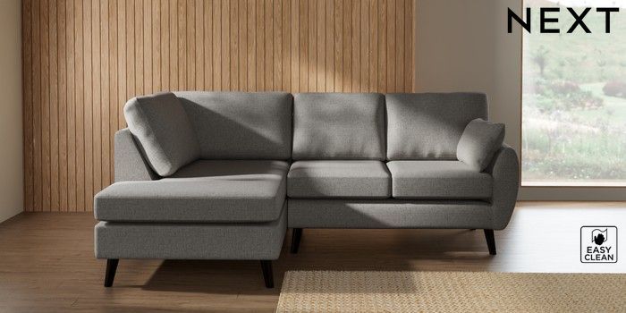 7.3.1 Buy Wilson Medium Corner Chaise - Left Hand Woven Chenille Easy Clean Light Grey Retro Tapered - Dark from the Laura Ashley online shop