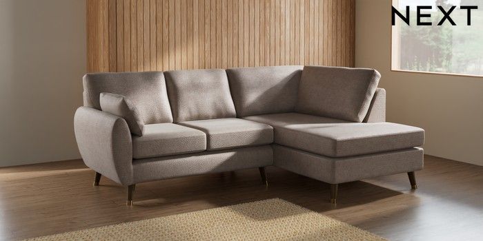 7.2.10 Buy Wilson Medium Corner Chaise - Right Hand Boucle Chenille Light Natural Low Retro Tapered Metal Cap - Mid from the Laura Ashley online shop Click here to use our website with more accessibility support, for example screen readers