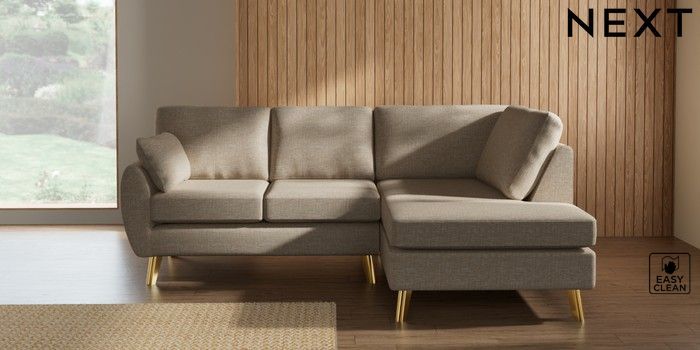 7.3.1 Buy Wilson Medium Corner Chaise - Right Hand Boucle Weave Easy Clean Dark Natural Metal Tapered - Gold from the Laura Ashley online shop