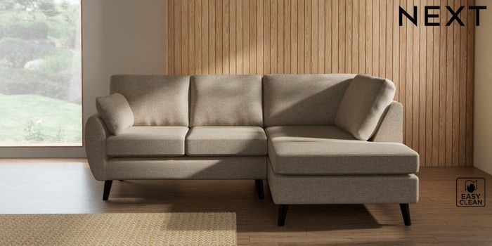 7.3.1 Buy Wilson Medium Corner Chaise - Right Hand Boucle Weave Easy Clean Dark Natural Retro Tapered - Dark from the Laura Ashley online shop