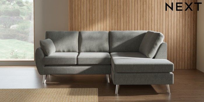 7.3.1 Buy Wilson Medium Corner Chaise - Right Hand Chunky Chenille Light Grey Metal Tapered - Chrome from the Laura Ashley online shop Click here to use our website with more accessibility support, for example screen readers