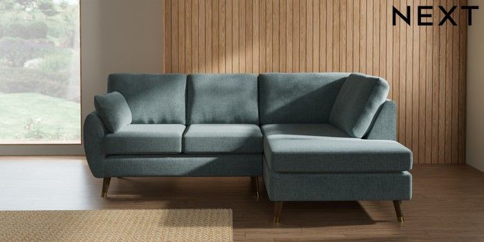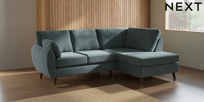 7.3.1 Buy Wilson Medium Corner Chaise - Right Hand Chunky Chenille Light Teal Green Low Retro Tapered Metal Cap - Mid from the Laura Ashley online shop
