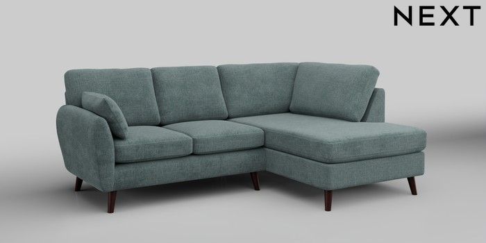 6.12.1 Buy Wilson Medium Corner Chaise - Right Hand Chunky Chenille Light Teal Green Retro Tapered - Dark Brown from the Laura Ashley online shop Click here to use our website with more accessibility support, for example screen readers
