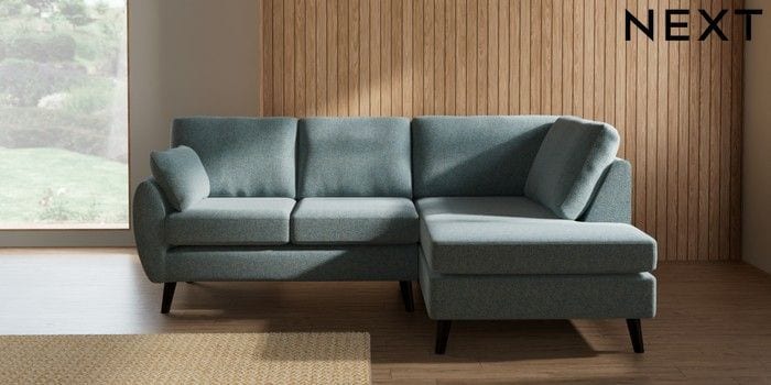 7.3.1 Buy Wilson Medium Corner Chaise - Right Hand Chunky Marl Mid Blue Retro Tapered - Dark from the Laura Ashley online shop Click here to use our website with more accessibility support, for example screen readers