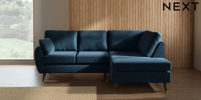 7.3.1 Buy Wilson Medium Corner Chaise - Right Hand Cotswold Chenille Dark Blue Low Retro Tapered Metal Cap - Mid from the Laura Ashley online shop