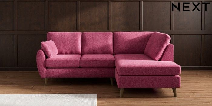 7.3.1 Buy Wilson Medium Corner Chaise - Right Hand Cotswold Chenille Dark Raspberry Pink Retro Tapered - Mid from the Laura Ashley online shop