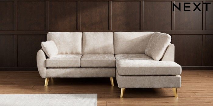 7.3.1 Buy Wilson Medium Corner Chaise - Right Hand Distressed Velour Mid Natural Metal Tapered - Gold from the Laura Ashley online shop