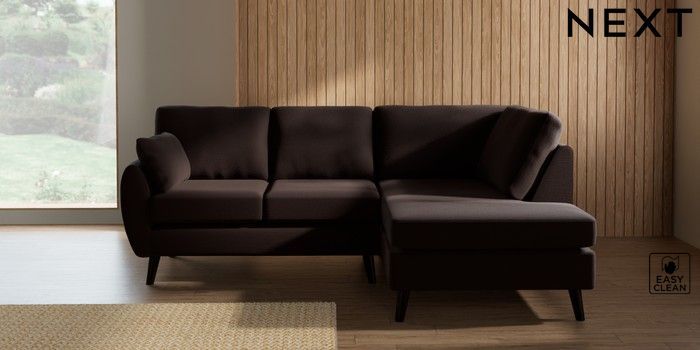 7.3.1 Buy Wilson Medium Corner Chaise - Right Hand Fine Chenille Easy Clean Chocolate Brown Retro Tapered - Dark from the Laura Ashley online shop