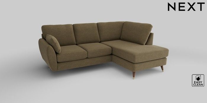6.12.1 Buy Wilson Medium Corner Chaise - Right Hand Fine Chenille Easy Clean Dark Moss Green Low Retro Tapered Metal Cap - Mid from the Laura Ashley online shop Click here to use our website with more accessibility support, for example screen readers