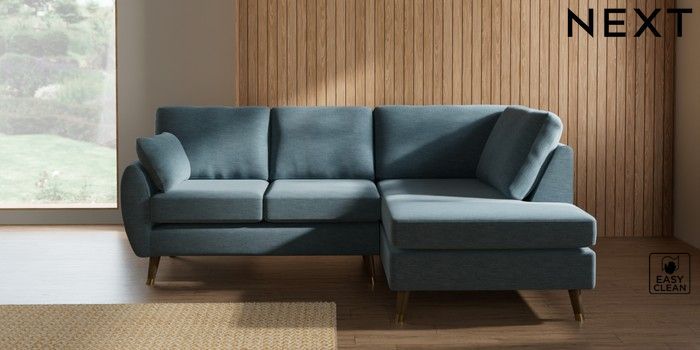 7.3.1 Buy Wilson Medium Corner Chaise - Right Hand Fine Chenille Easy Clean Mid Blue Low Retro Tapered Metal Cap - Mid from the Laura Ashley online shop