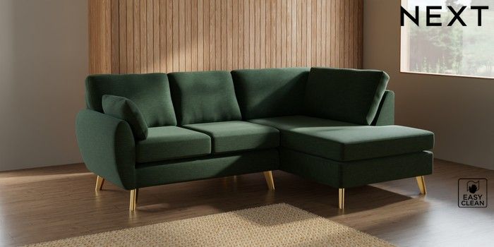 7.3.1 Buy Wilson Medium Corner Chaise - Right Hand Fine Chenille Easy Clean Mid Khaki Green Metal Tapered - Gold from the Laura Ashley online shop
