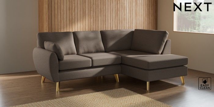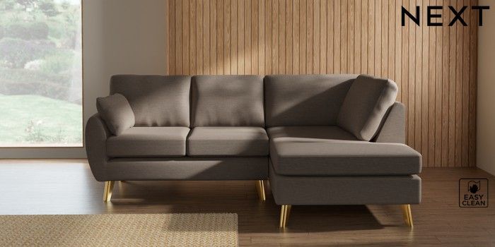 7.3.1 Buy Wilson Medium Corner Chaise - Right Hand Fine Chenille Easy Clean Mid Taupe Brown Metal Tapered - Gold from the Laura Ashley online shop