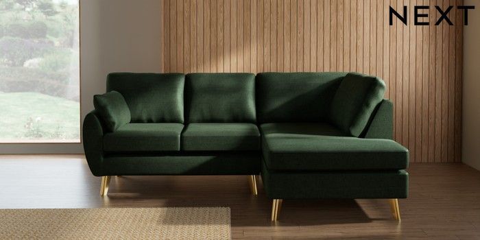 7.3.1 Buy Wilson Medium Corner Chaise - Right Hand Luxe Chenille Dark Green Metal Tapered - Gold from the Laura Ashley online shop