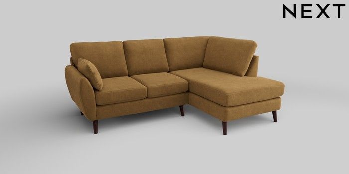 6.12.1 Buy Wilson Medium Corner Chaise - Right Hand Luxe Chenille Honey Yellow Retro Tapered - Dark Brown from the Laura Ashley online shop Click here to use our website with more accessibility support, for example screen readers