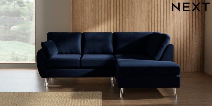 7.3.1 Buy Wilson Medium Corner Chaise - Right Hand Luxe Chenille Navy Blue Metal Tapered - Chrome from the Laura Ashley online shop