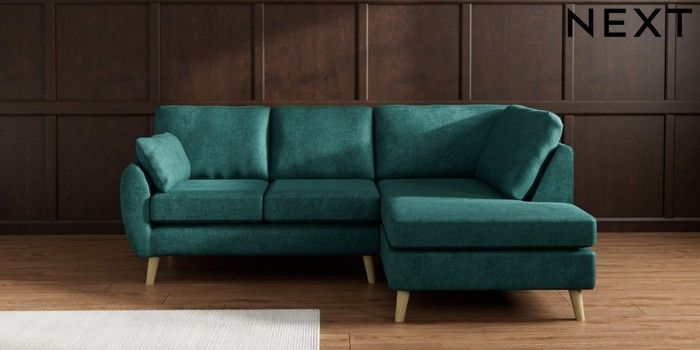 7.3.1 Buy Wilson Medium Corner Chaise - Right Hand Plush Chenille Dark Teal Green Retro Tapered - Light from the Laura Ashley online shop