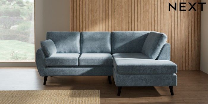 7.3.1 Buy Wilson Medium Corner Chaise - Right Hand Plush Chenille Light Blue Retro Tapered - Dark from the Laura Ashley online shop