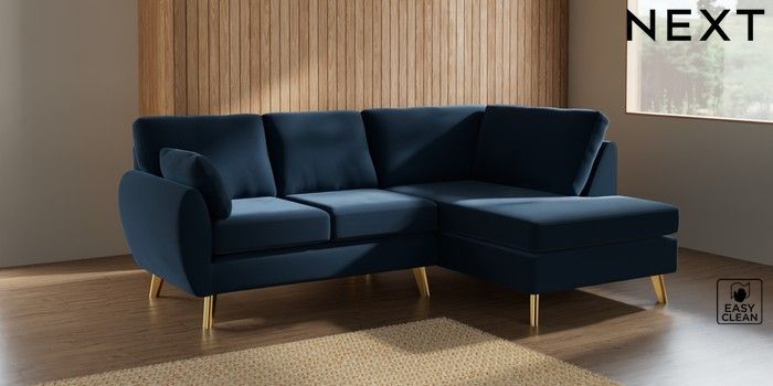 7.3.1 Buy Wilson Medium Corner Chaise - Right Hand Plush Velvet Easy Clean Airforce Blue Metal Tapered - Gold from the Laura Ashley online shop
