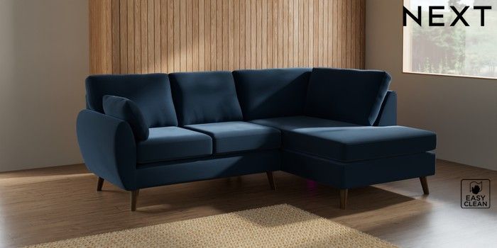 7.3.1 Buy Wilson Medium Corner Chaise - Right Hand Plush Velvet Easy Clean Airforce Blue Retro Tapered - Mid from the Laura Ashley online shop