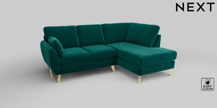 6.12.1 Buy Wilson Medium Corner Chaise - Right Hand Plush Velvet Easy Clean Juniper Green Metal Tapered - Gold from the Laura Ashley online shop Click here to use our website with more accessibility support, for example screen readers