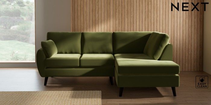 7.3.1 Buy Wilson Medium Corner Chaise - Right Hand Plush Velvet Easy Clean Mid Olive Green Retro Tapered - Dark from the Laura Ashley online shop