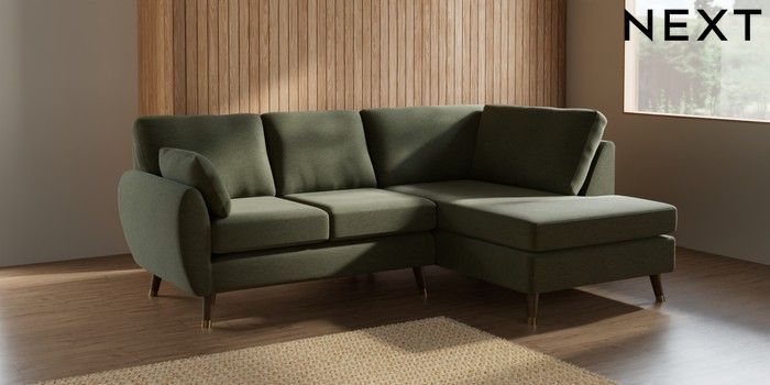 7.3.1 Buy Wilson Medium Corner Chaise - Right Hand Ripple Chenille Mid Moss Green Low Retro Tapered Metal Cap - Mid from the Laura Ashley online shop