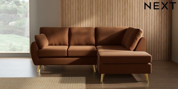 7.3.1 Buy Wilson Medium Corner Chaise - Right Hand Ripple Chenille Mid Rust Brown Metal Tapered - Gold from the Laura Ashley online shop