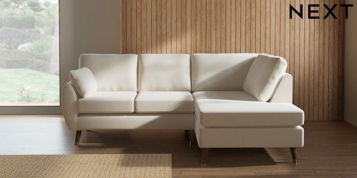 7.3.1 Buy Wilson Medium Corner Chaise - Right Hand Ripple Chenille Oyster Low Retro Tapered Metal Cap - Mid from the Laura Ashley online shop