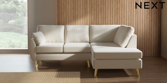 7.3.1 Buy Wilson Medium Corner Chaise - Right Hand Ripple Chenille Oyster Metal Tapered - Gold from the Laura Ashley online shop