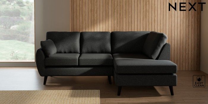 7.3.1 Buy Wilson Medium Corner Chaise - Right Hand Tweedy Blend Easy Clean Charcoal Grey Retro Tapered - Dark from the Laura Ashley online shop
