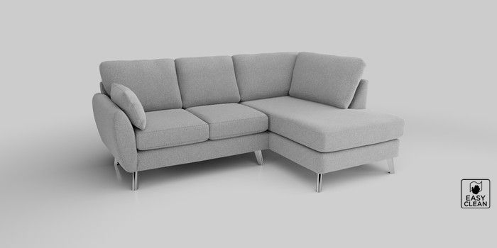 6.12.1 Buy Wilson Medium Corner Chaise - Right Hand Tweedy Blend Easy Clean Light Silver Grey Metal Tapered - Chrome from the Laura Ashley online shop Click here to use our website with more accessibility support, for example screen readers