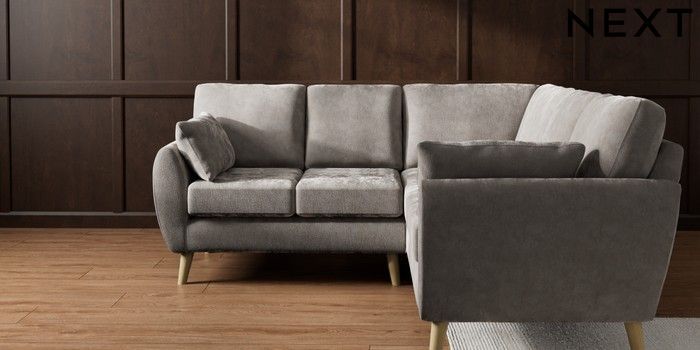 7.3.1 Buy Wilson Small Corner Sofa - Universal Distressed Velour French Grey Retro Tapered - Light from the Laura Ashley online shop