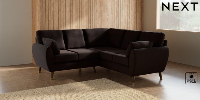 7.3.1 Buy Wilson Small Corner Sofa - Universal Fine Chenille Easy Clean Chocolate Brown Low Retro Tapered Metal Cap - Mid from the Laura Ashley online shop