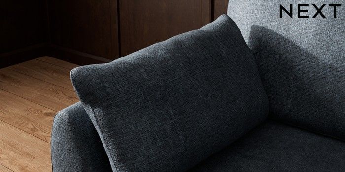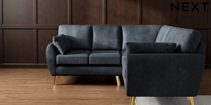 7.3.1 Buy Wilson Small Corner Sofa - Universal Plush Chenille Slate Blue Metal Tapered - Gold from the Laura Ashley online shop