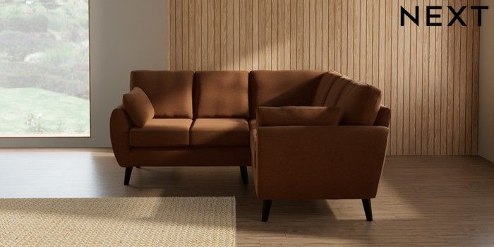 7.3.1 Buy Wilson Small Corner Sofa - Universal Ripple Chenille Mid Rust Brown Retro Tapered - Dark from the Laura Ashley online shop