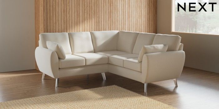 7.3.1 Buy Wilson Small Corner Sofa - Universal Ripple Chenille Oyster Metal Tapered - Chrome from the Laura Ashley online shop