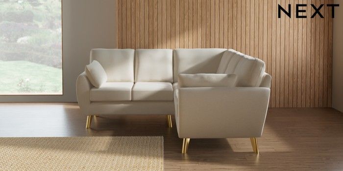 7.3.1 Buy Wilson Small Corner Sofa - Universal Ripple Chenille Oyster Metal Tapered - Gold from the Laura Ashley online shop