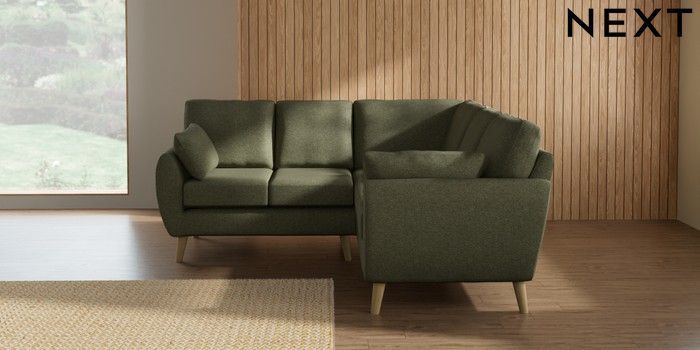 7.3.1 Buy Wilson Small Corner Sofa - Universal Tweedy Chenille Mid Moss Green Retro Tapered - Light from the Laura Ashley online shop