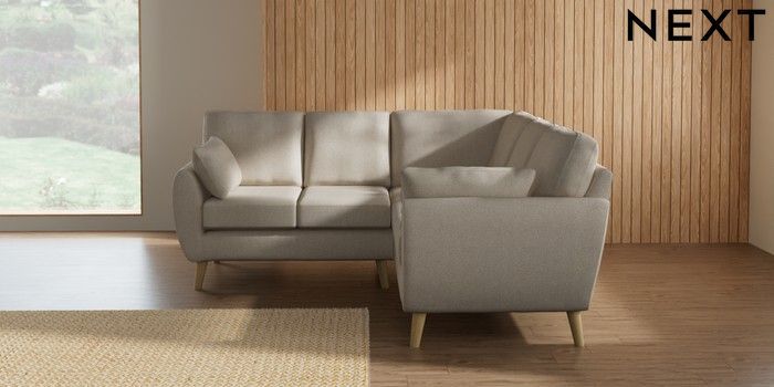 7.3.1 Buy Wilson Small Corner Sofa - Universal Tweedy Chenille Oyster Retro Tapered - Light from the Laura Ashley online shop