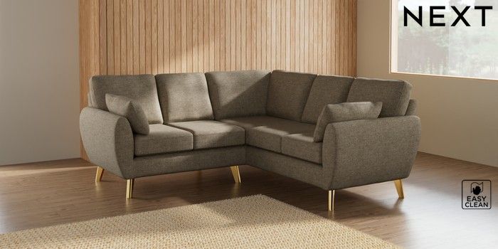 7.3.1 Buy Wilson Small Corner Sofa - Universal Woven Chenille Easy Clean Mid Natural Metal Tapered - Gold from the Laura Ashley online shop