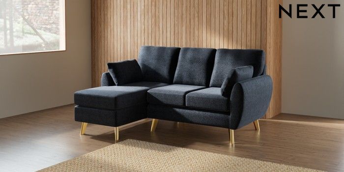 7.3.1 Buy Wilson Small Sofa Chaise - Left Hand Boucle Chenille Dark Slate Blue Metal Tapered - Gold from the Laura Ashley online shop