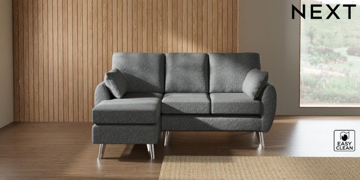 7.3.1 Buy Wilson Small Sofa Chaise - Left Hand Chunky Boucle Easy Clean Mid Grey Metal Tapered - Chrome from the Laura Ashley online shop