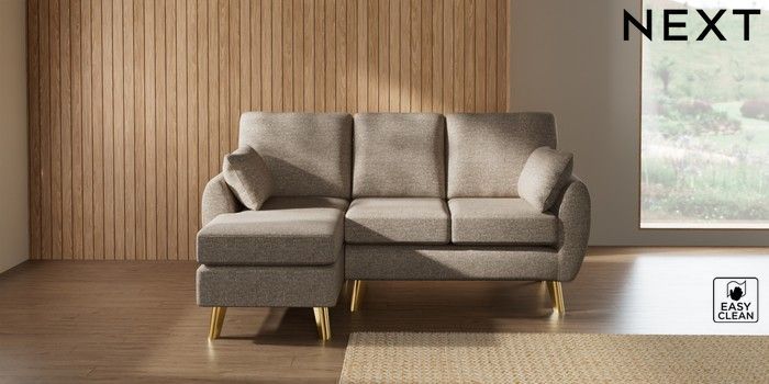 7.3.1 Buy Wilson Small Sofa Chaise - Left Hand Chunky Boucle Easy Clean Mid Natural Metal Tapered - Gold from the Laura Ashley online shop