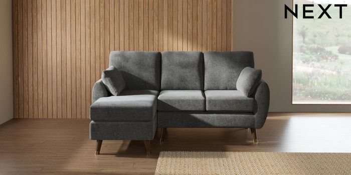 7.3.1 Buy Wilson Small Sofa Chaise - Left Hand Chunky Chenille Dark Grey Low Retro Tapered Metal Cap - Mid from the Laura Ashley online shop