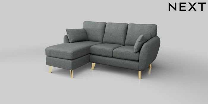 6.12.1 Buy Wilson Small Sofa Chaise - Left Hand Chunky Weave Mid Grey Metal Tapered - Gold from the Laura Ashley online shop Click here to use our website with more accessibility support, for example screen readers