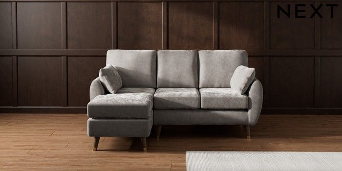7.3.1 Buy Wilson Small Sofa Chaise - Left Hand Distressed Velour French Grey Low Retro Tapered Metal Cap - Mid from the Laura Ashley online shop